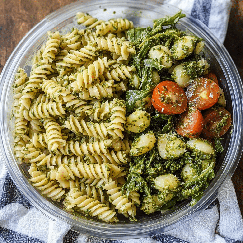Here are 9 serving suggestions for Arugula Pesto Pasta Meal Prep: