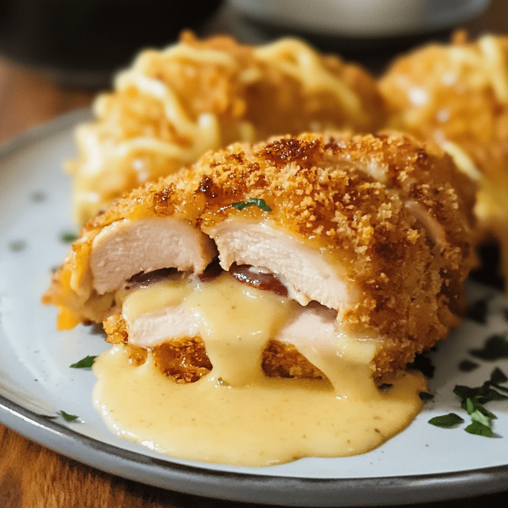 - Stuffed Chicken Cordon Bleu: Instead of rolling, slice the chicken breasts and stuff them with ham and cheese before breading.