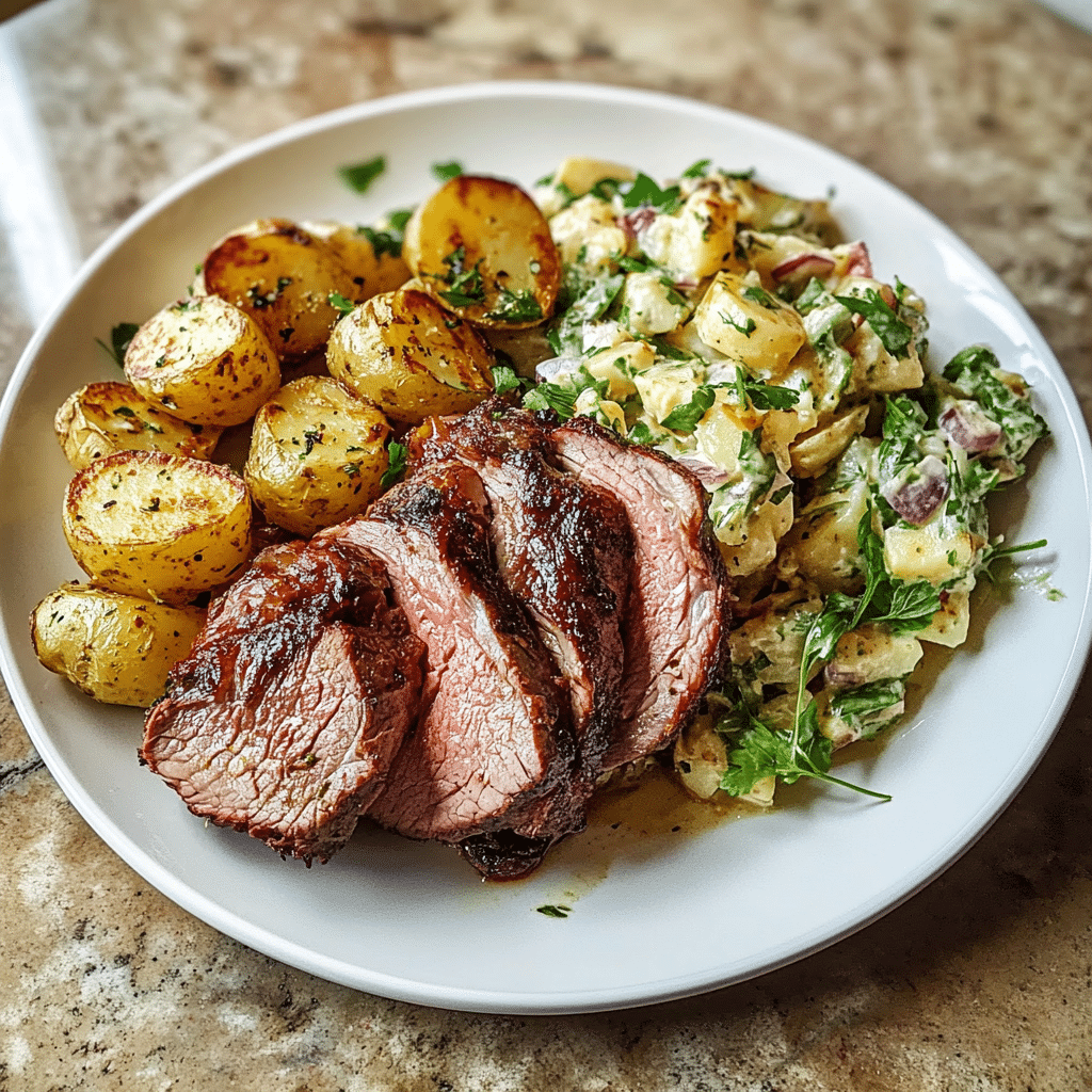 What I love about this dish is its simplicity and elegance. The lamb can be grilled to your preferred level of doneness and seasoned with just salt, pepper, and garlic for a clean taste. The potato salad remains classic but can be customized with a touch of mustard, crispy beef bacon, or chopped celery for added texture. Whether served alongside grilled veggies, crusty bread, or a fresh green salad, BBQ Lamb and Simple Potato Salad is a standout combination that celebrates smoky flavors, creaminess, and freshness in every bite.