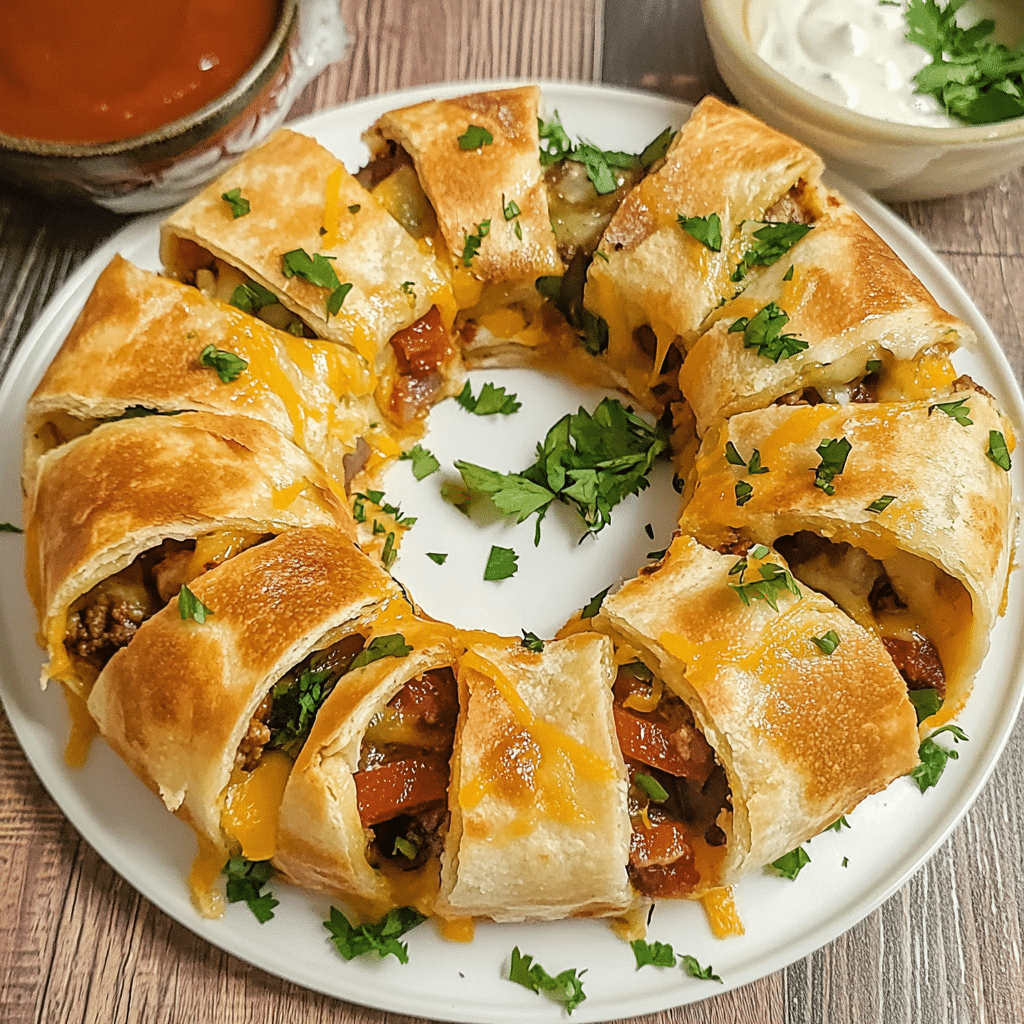 I first made this for a family gathering, and it was an instant hit! The best part was watching everyone tear off a cheesy, flavor-packed wedge and dunk it into a bowl of fresh salsa or guacamole. The combination of crispy tortillas and gooey, savory filling makes every bite irresistible.