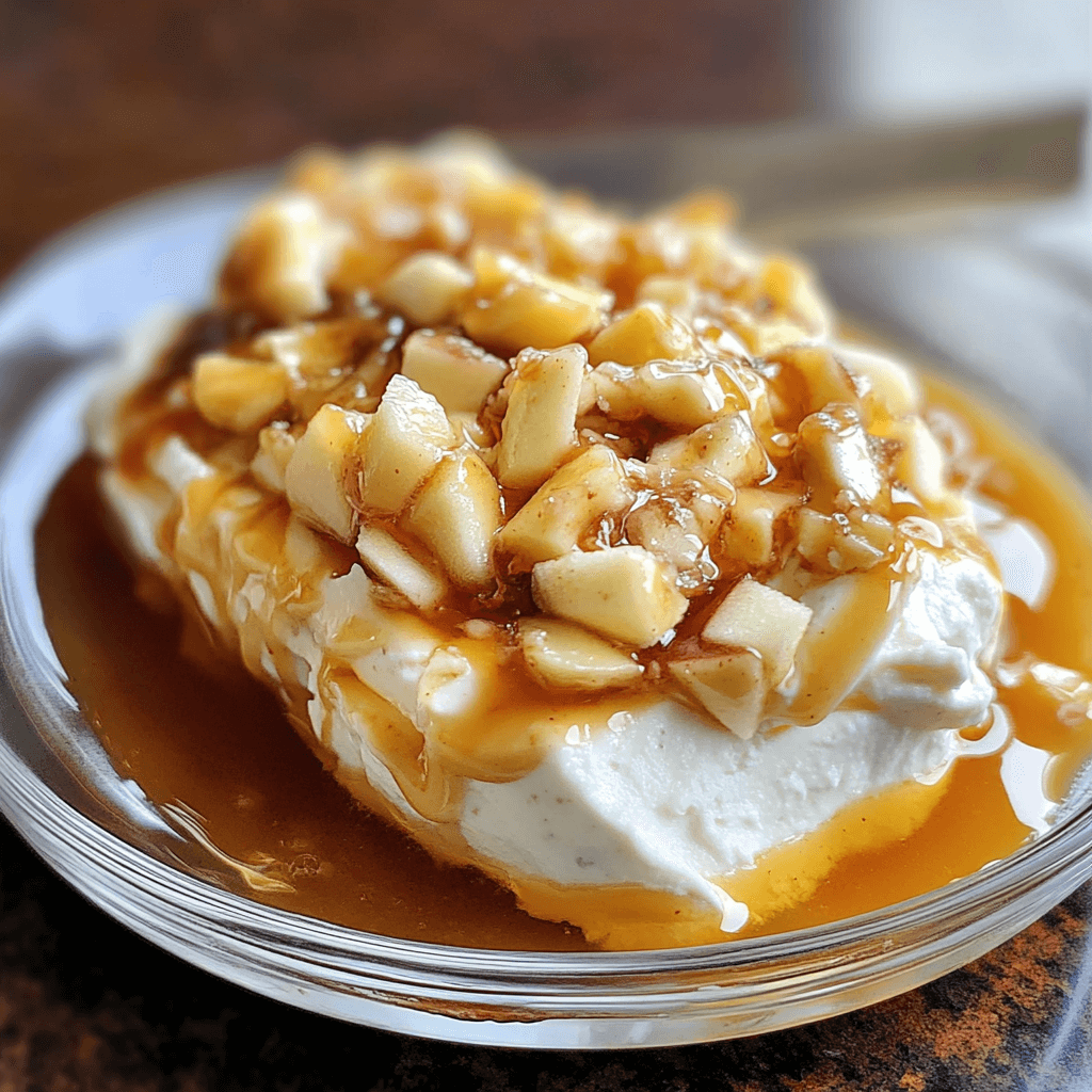 - Beautiful Presentation: The caramel drizzle and apple topping make it visually appealing.