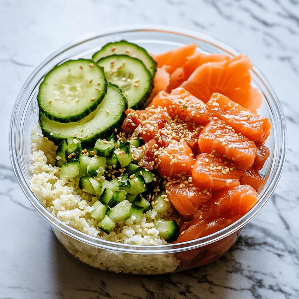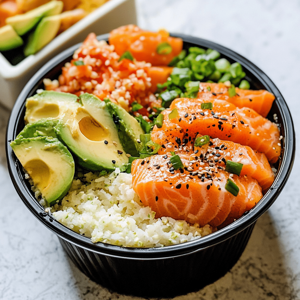 Here are 10 serving suggestions for Cauliflower Rice Salmon Poke Bowl Meal Prep: