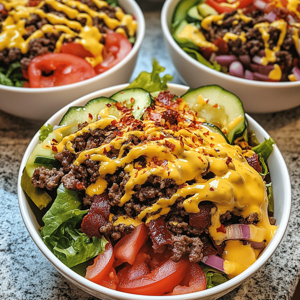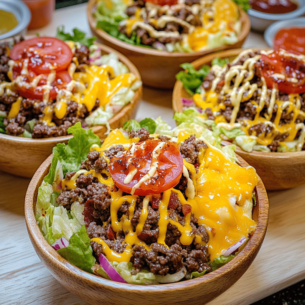 - Cheeseburger Salad Bowl: Use lettuce as the base and top with chopped cheeseburger ingredients for a salad version.