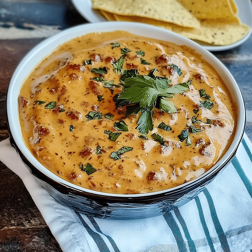 To make this dip, start by cooking crumbled chorizo in a skillet until it’s browned and crispy. Set the chorizo aside and use the same skillet to sauté onions and garlic, adding chipotle peppers in adobo sauce for that signature smoky heat. Next, melt cream cheese, shredded cheddar, and a bit of milk or half-and-half to create a smooth, velvety queso. Once the cheese is melted, stir in the cooked chorizo, and season with salt and pepper to taste.