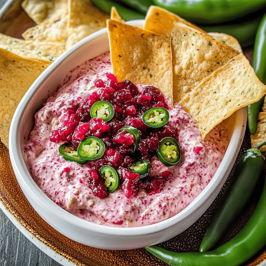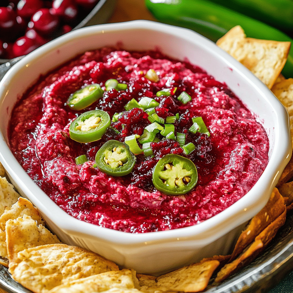 - Colorful and Eye-Catching: The vibrant red of the cranberries and green of the jalapenos make this dip visually appealing.