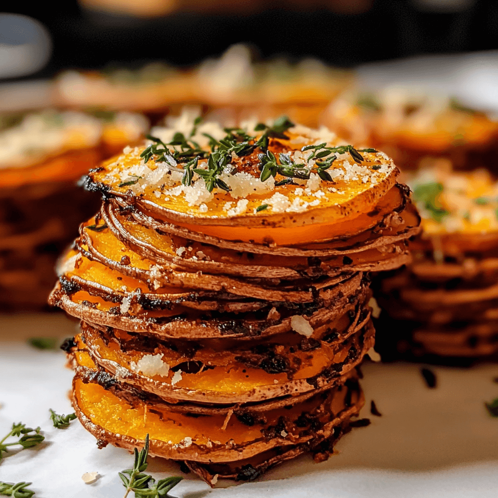- Herbaceous Flavor: Fresh thyme infuses the sweet potato stacks with a fragrant, earthy note.