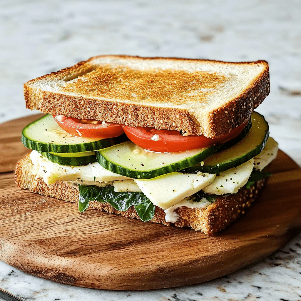 To make this sandwich, start by slicing fresh cucumber and ripe tomatoes. Spread a thin layer of pesto or a drizzle of olive oil and balsamic glaze on two slices of your favorite bread—sourdough, ciabatta, or whole grain all work wonderfully. Layer the cucumber slices, fresh mozzarella, and tomatoes onto the bread, adding fresh basil leaves for an aromatic and colorful touch.