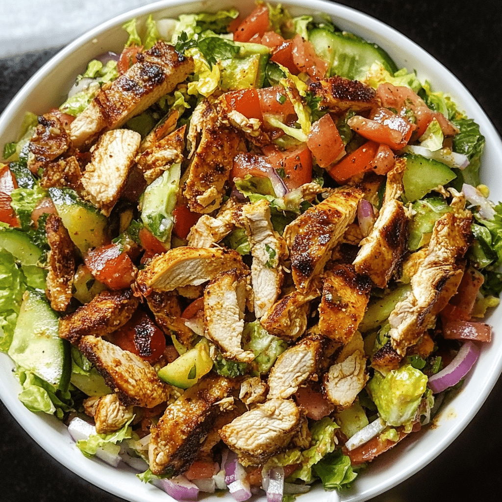 I first made this Chicken Shawarma Salad when I was craving the flavors of shawarma but wanted something lighter and more refreshing. The chicken, marinated in a mix of Middle Eastern spices, gets cooked until perfectly charred on the outside and juicy on the inside. I like to pair it with fresh veggies, like cucumber and tomatoes, and a drizzle of tahini or yogurt dressing for extra creaminess. The salad is often topped with a sprinkle of fresh parsley and a squeeze of lemon for brightness.