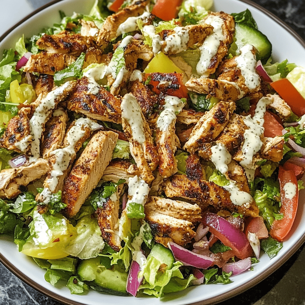 Easy Chicken Shawarma Salad brings the bold, savory flavors of shawarma into a light and fresh salad. This dish features tender, spiced chicken, marinated with a blend of warm spices like cumin, coriander, and paprika, served on a bed of crisp greens, tomatoes, cucumbers, and red onions. Topped with a creamy tahini dressing or a yogurt-based sauce, it’s a refreshing and satisfying meal that’s perfect for lunch or dinner.