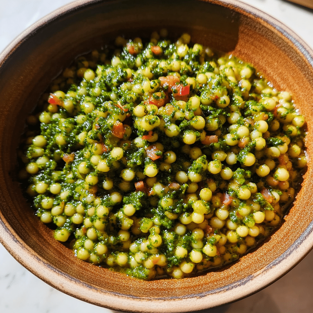 I first made this dish when I was craving something fresh yet hearty, and the combination of fregola and the fragrant verde sauce was exactly what I needed. The verde sauce, with its blend of herbs like basil, parsley, and mint, added a burst of freshness that perfectly complemented the pasta. What I love most about this recipe is how customizable it is—you can add grilled chicken, roasted vegetables, or even seafood to make it a complete meal. Whether served as a main course or as a side, Fregola with Verde Sauce is a flavorful, satisfying dish that feels both light and indulgent!