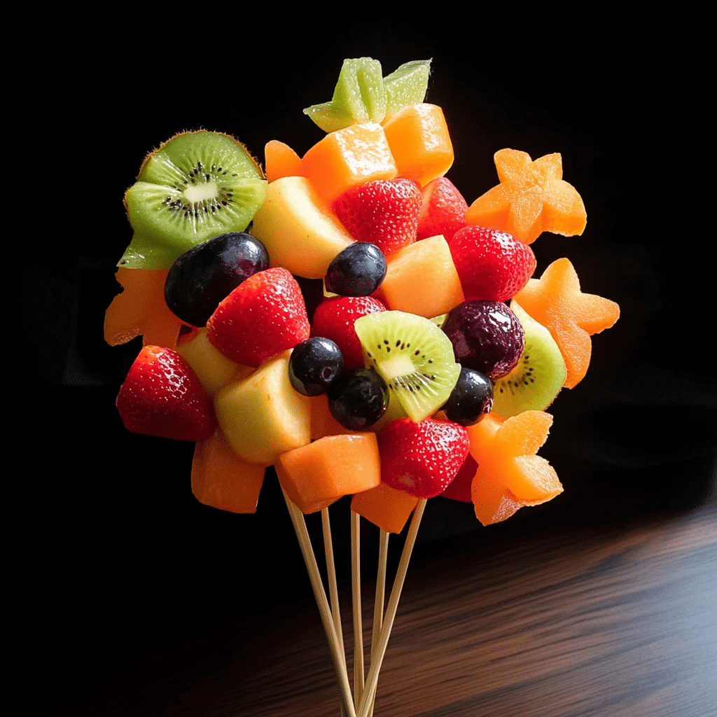 - Visually Stunning: A bouquet of vibrant fruits arranged beautifully on skewers.