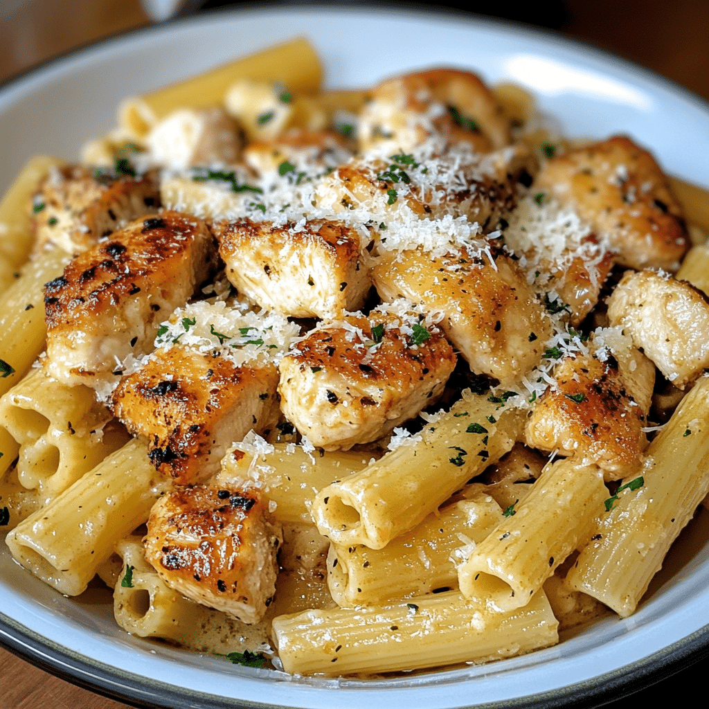 Garlic Butter Chicken with Rigatoni and Parmesan is a rich and flavorful dish that combines tender, juicy chicken with perfectly cooked rigatoni in a creamy, garlic-infused butter sauce. The addition of Parmesan adds a delightful, savory finish that elevates the entire meal. The balance of savory garlic, smooth butter, and rich chicken makes this dish incredibly satisfying and perfect for any occasion.