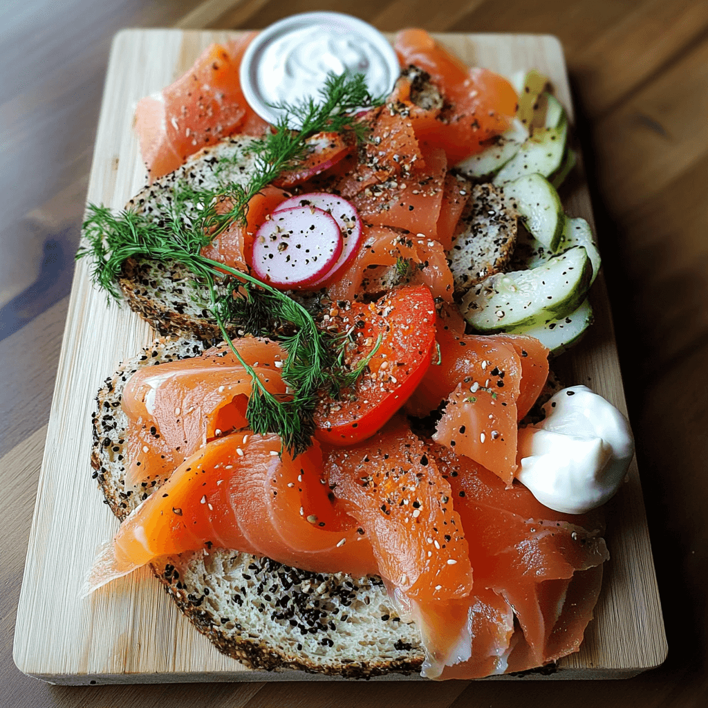 - Smoked Salmon Platter: Arrange on a board with crackers, cheeses, and fruit.