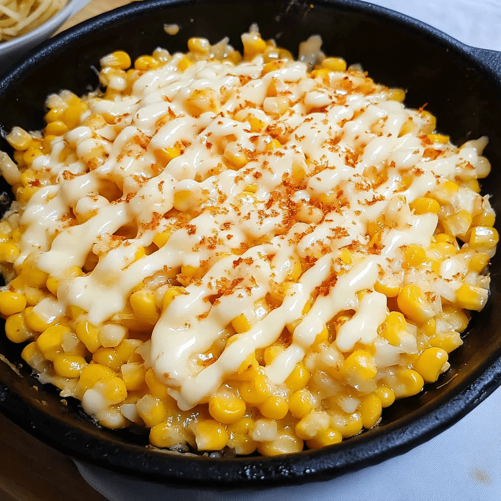 Korean Corn Cheese is a comforting and cheesy dish that’s popular in Korean cuisine, often served as a side or appetizer. It’s made by mixing sweet corn kernels with a rich, gooey combination of mayonnaise and cheese, then baking it until golden and bubbly. The dish is often topped with melted mozzarella or a blend of cheeses for extra creaminess and flavor, and you might see it garnished with a sprinkle of black pepper or a dash of paprika for a bit of spice.