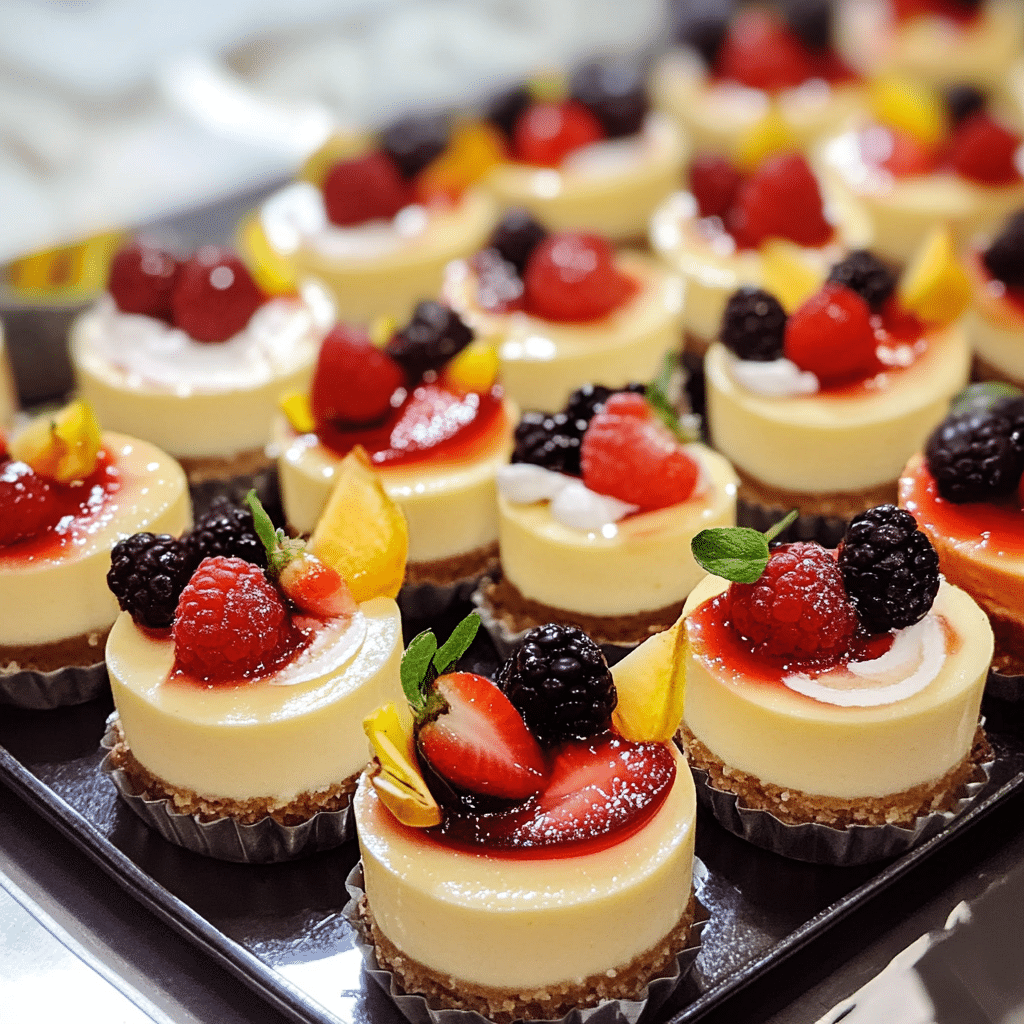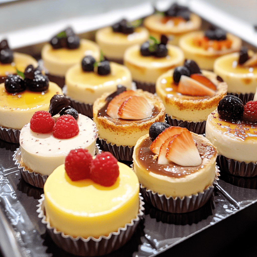 - Classic New York Style Mini Cheesecakes: A rich, creamy base with a graham cracker crust and a hint of vanilla. Perfectly dense and decadent.