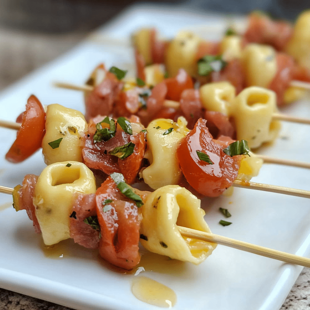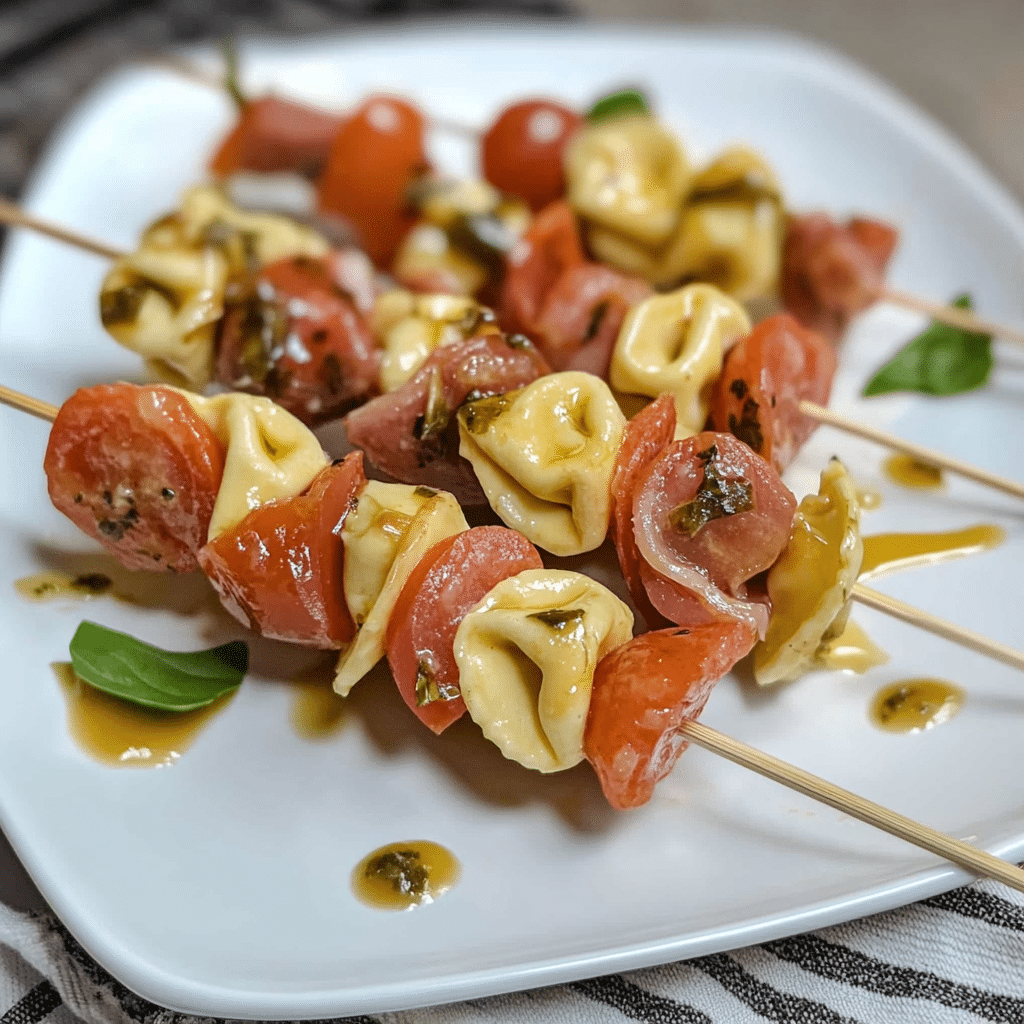 Mini Tortellini Kabobs are a fun and flavorful appetizer featuring tender, cheese-filled tortellini skewered with fresh ingredients like cherry tomatoes, basil, and mozzarella, then drizzled with balsamic glaze or pesto. These bite-sized kabobs are easy to make, visually stunning, and perfect for parties, picnics, or snack boards.