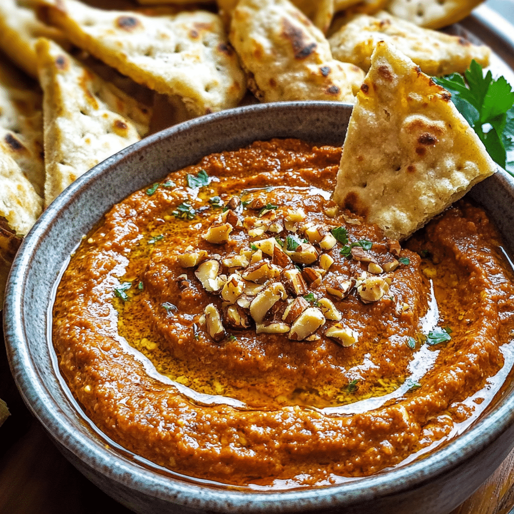 I first made this when I wanted something different from traditional hummus but just as flavorful and versatile. The combination of sweet roasted peppers, crunchy walnuts, and a hint of spice from Aleppo pepper created a dip that was both comforting and irresistibly delicious. What I love most about this recipe is how effortlessly it comes together while delivering deep, complex flavors.