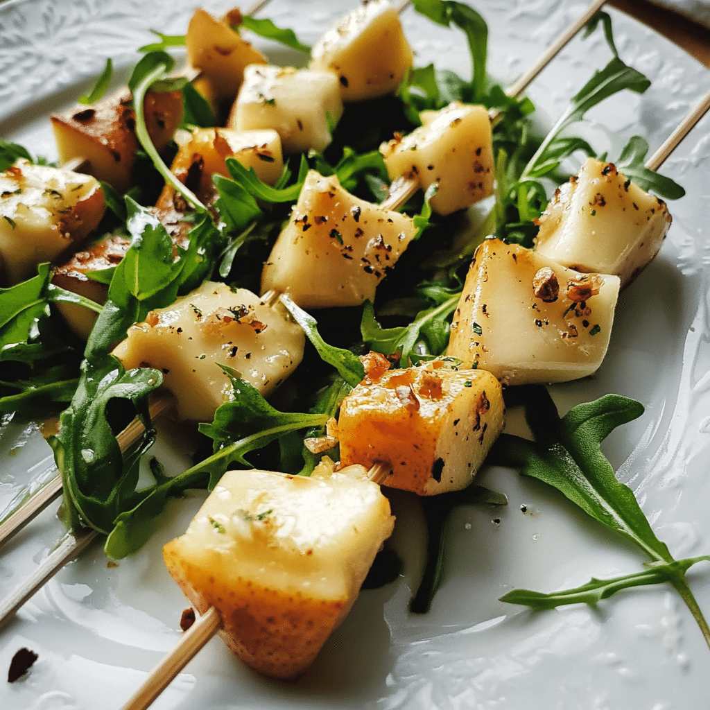 The beauty of this dish lies in its simplicity—just a few quality ingredients and a little creativity. You can easily assemble the skewers ahead of time, making them a stress-free and elegant addition to your menu. The combination of fresh greens, creamy Brie, and juicy pear is not only delicious but also visually stunning. These skewers are sure to be a crowd-pleaser and an impressive way to kick off any meal.