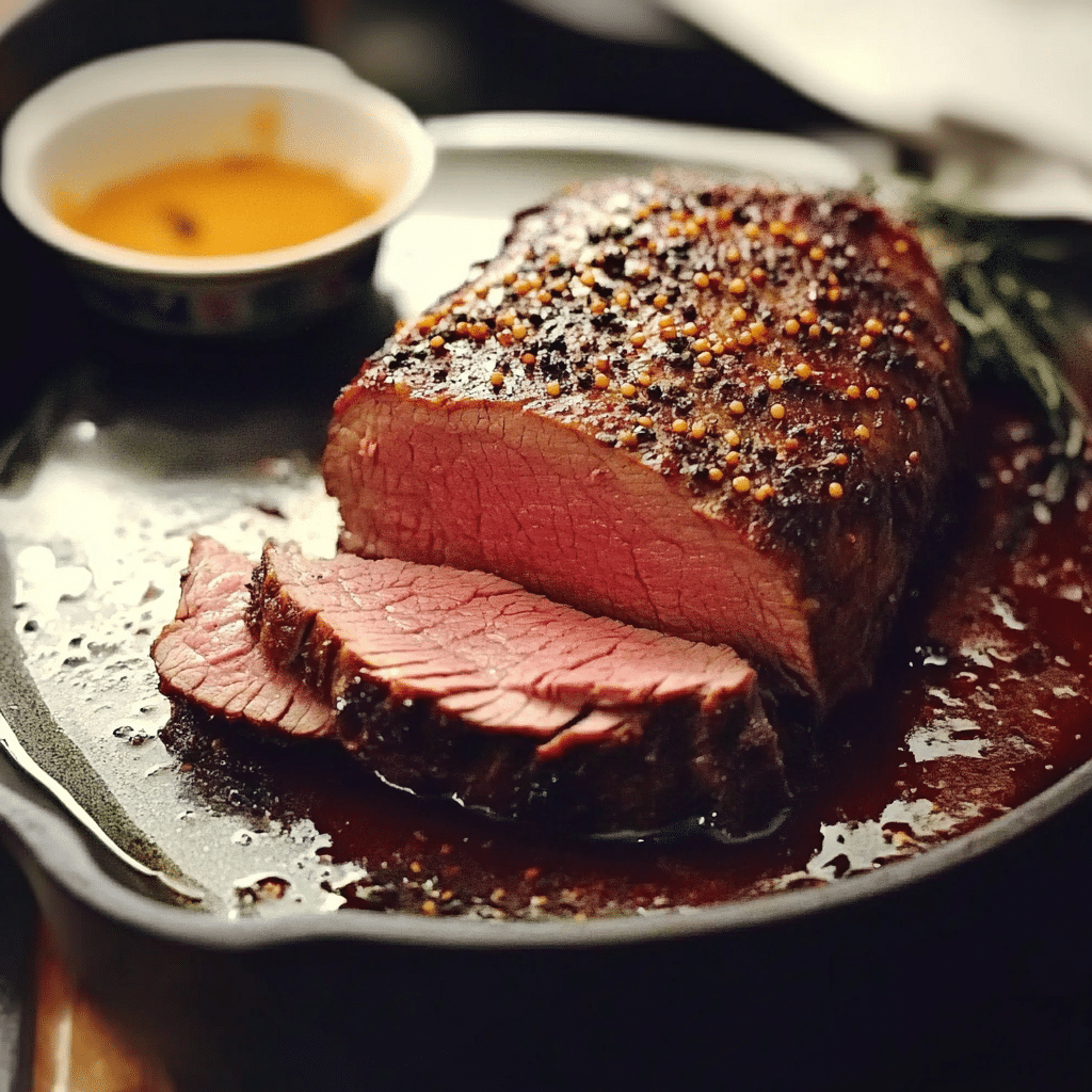 Use a sharp carving knife and slice against the grain for tenderness. - Can I adjust the peppercorn crust to reduce spiciness?