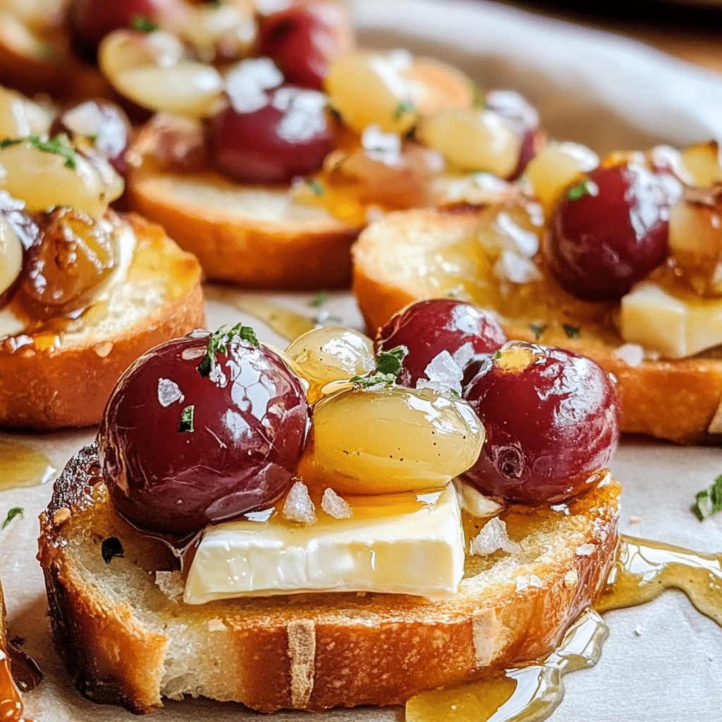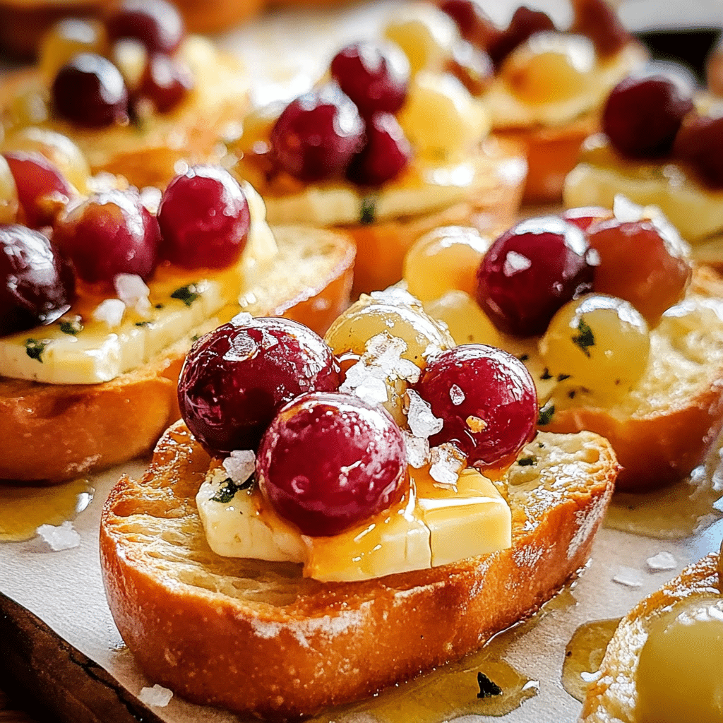 - Add Roasted Grapes: Spoon the roasted grapes onto the Brie-topped crostini.