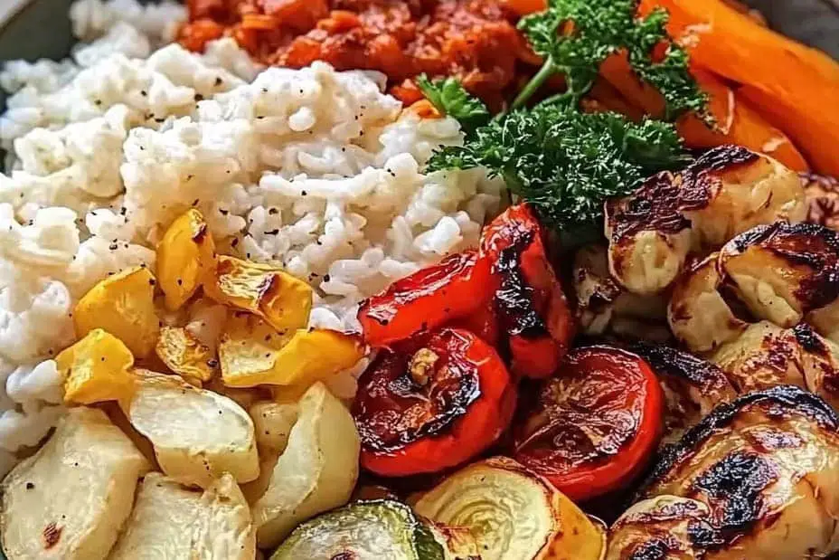 Roasted Vegetable Rice Bowl is an amazing and nutritious meal that celebrates the vibrant flavors and colors of fresh vegetables. This delightful dish combines perfectly cooked rice with a variety of roasted vegetables, providing an explosion of taste and nutrition in every bite. The beauty of this recipe lies not only in its health benefits but also in its versatility. You can customize it to suit your tastes and the season’s offerings. Whether it’s a busy weekday dinner or a cozy weekend lunch, this rice bowl is ready in no time and will leave you feeling satisfied and nourished.
