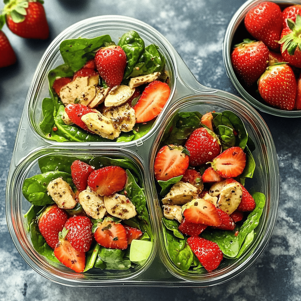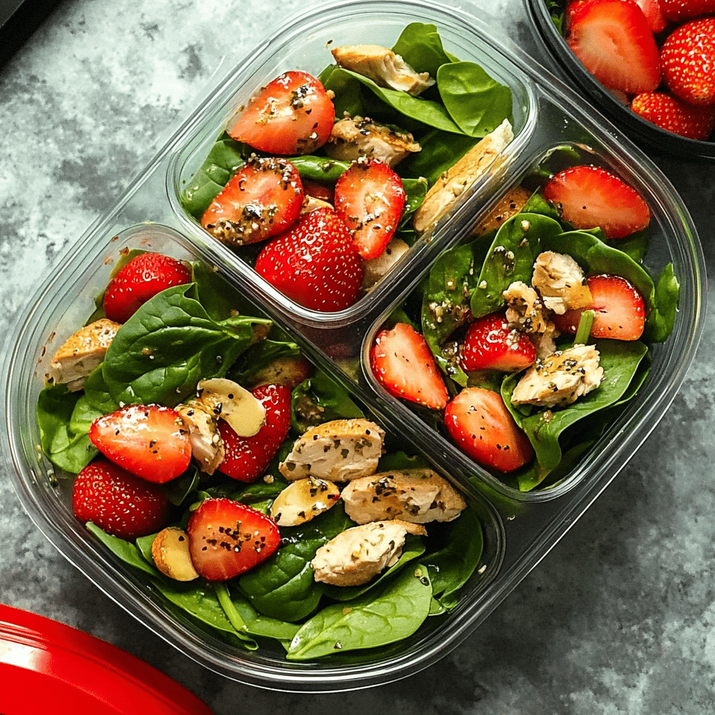 Spinach & Strawberry Meal-Prep Salad is a vibrant, refreshing salad that’s perfect for meal prepping ahead of time. It combines fresh spinach, sweet strawberries, and other veggies like red onions, cucumbers, or even walnuts for crunch. The strawberries add a natural sweetness that pairs beautifully with the earthy spinach, while a tangy balsamic vinaigrette ties everything together. This salad is not only healthy but also easy to customize based on your preferences or what’s in season.
