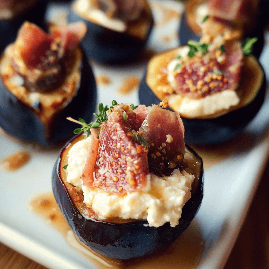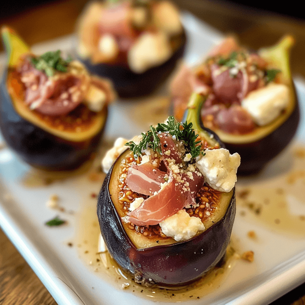 Stuffed Figs with Goat Cheese and Prosciutto are an elegant, sweet-savory appetizer featuring tender figs filled with creamy goat cheese, wrapped in salty prosciutto, and drizzled with honey or balsamic glaze. Each bite is a perfect balance of flavors and textures!