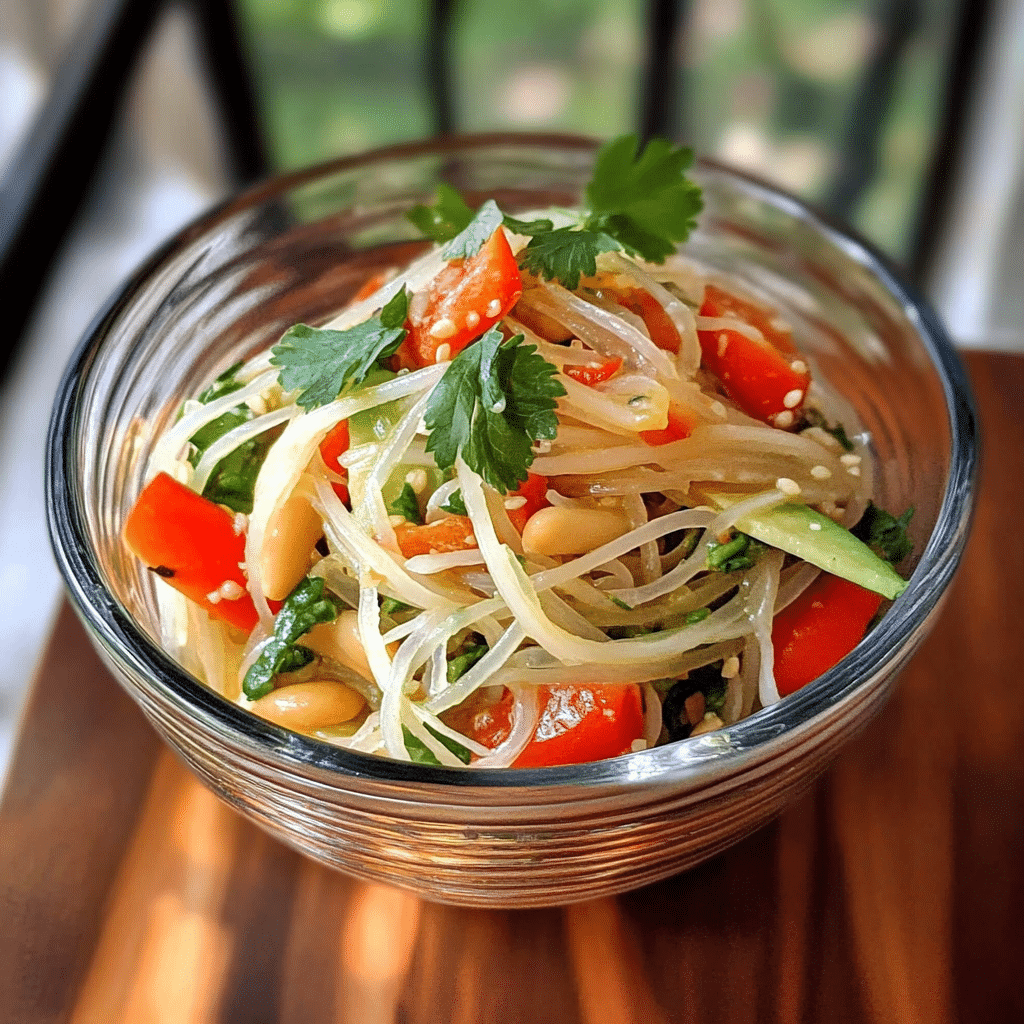 Thai Green Papaya Salad, or Som Tam Thai, is a vibrant, refreshing dish that perfectly balances sweet, sour, salty, and spicy flavors. Made with crisp shredded green papaya, juicy tomatoes, crunchy peanuts, and a bold chili-lime dressing, this salad is a staple of Thai cuisine and a must-try for anyone who loves fresh, zesty flavors.