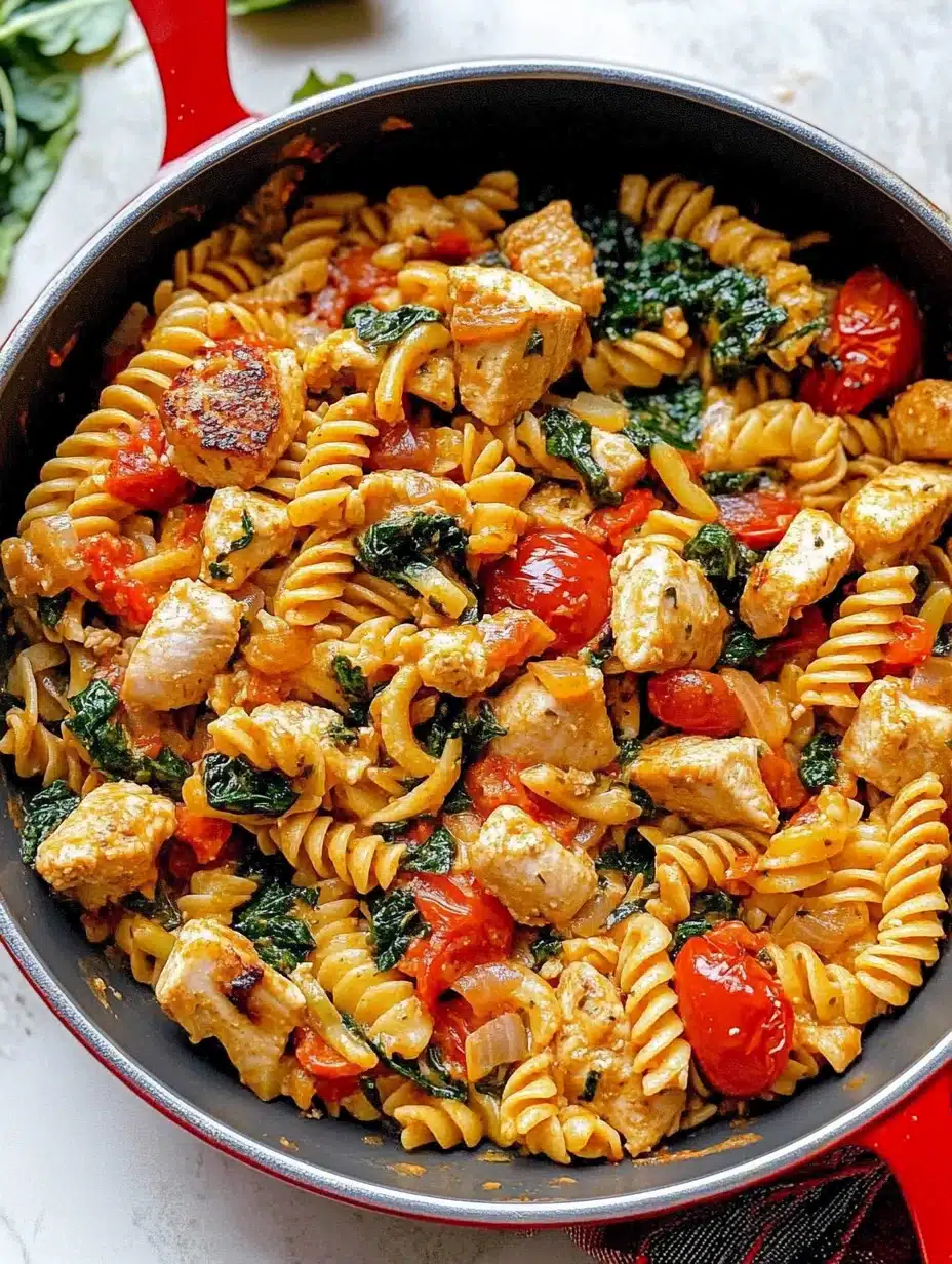 The first bite of this delightful dish reveals a burst of tomatoes mingling with the savory notes of chicken and the fresh taste of spinach. It’s not only satisfying but also visually appealing with its vibrant colors. Whether you’re hosting a dinner party or simply looking for a comforting meal after a long day, this pasta dish is versatile enough to impress anyone who tries it.